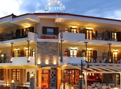 Разположение: Хотелът се намира на първия ръкав Касандра на Халкидическия полуостров, на 150 м. от плажа и в центъра на селището Ханиоти. Хотел Калипсо е с традиционна гръцка архитектура и предлага комфорт на своите гости.